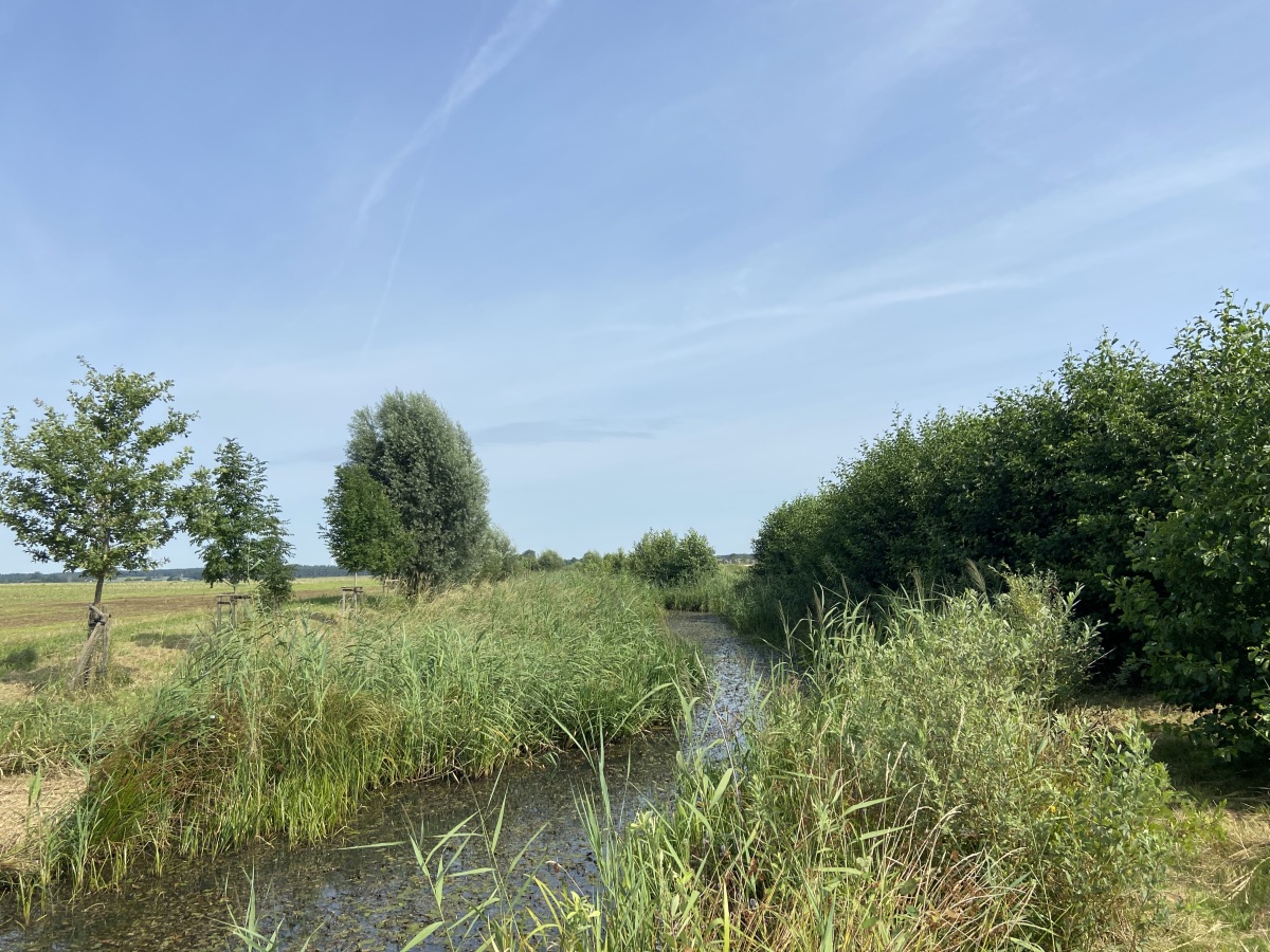 Pufferstreifen an Stillgewässern oder auch Feldhecken sind als physische Barriere konzipiert, die den Nährstoffabtrag durch Erosion reduzieren und die Biodiversität fördern, indem sie Lebensraum für Pflanzen und Tiere schaffen. Diese Maßnahmen unterstützen das Ökosystem im Verfahrensgebiet und fördern die Artenvielfalt.